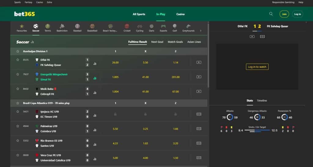Navdušuje nas tudi njihova platforma za stave v živo, ki je zelo preprosta in enostavna za uporabo. Poleg tega je pri stavah v živo na voljo veliko stavnih opcij, ki jih lahko stavite. Še več – ko stavite v živo, si lahko nekatere tekme tudi ogledate v živo in tako iz prve roke vidite, kaj se dogaja na tekmi in se tako lažje odločite za stavo. Po našem mnenju je bet365 stavnica za resne igralce, ki jim ni tako zelo pomembna začetna promocija, ampak kvaliteta, ki jo ponuja in po kvaliteti še nismo zasledili stavice, ki bi ji lahko parirala.